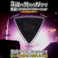 | 商品説明 | 【ピック1枚3役!10枚セット!】 ピックの厚みで弾き心地が変わります!ピックの3つの角の厚みを変えることで、ジャンル違いの演奏や気分に合わせてスピーディー&シンプルに対応できます。予備ピックやお持ちのギターごとにセットしておける10枚セット。 【HEAVY・MEDIUM・SOFTの使い分け!】 1.0mm/しなりが少なく、パワフルなギターソロに。0.75mm/正確なカッティングやバッキングにバランスよい厚さ。0.5mm/語りかけるような味わいあるアルペジオに。3つの角それぞれ、アタックの強さ、弦離れの違いを実感できます。1枚で弾き分けできる万能ピックを体感してください。 【親指にフィット&ノンスリップ!】 中心の円内に滑り防止加工がされているので、持ちやすく、安定したピッキングが得られます。 【耐久性・削れにくい!】 材質はポリカーボネート製。ポリカーボネートは、衝撃に強くて削れにくく、耐久性があるところが特徴です。有機ガラスの一種であるため、独特のアタック音が楽しめます。 |