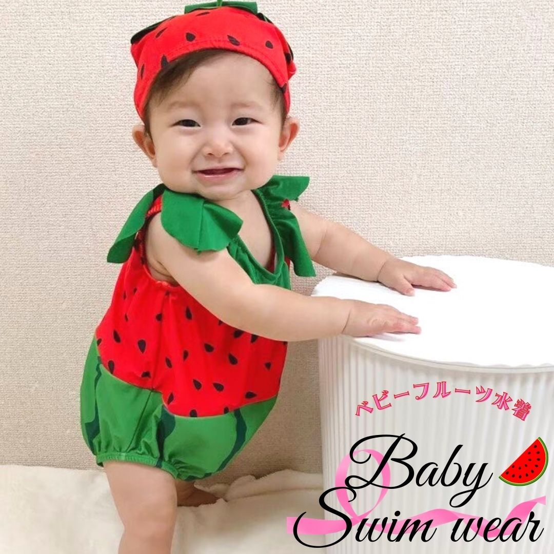 暑い夏をエンジョイ!キャップとセットになった可愛いフルーツ水着です。