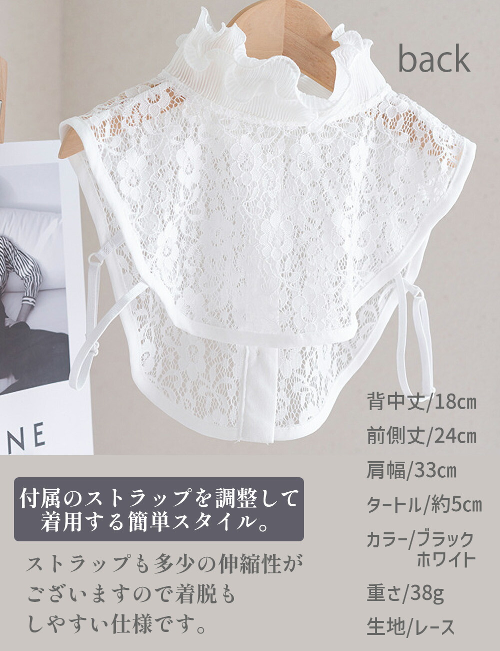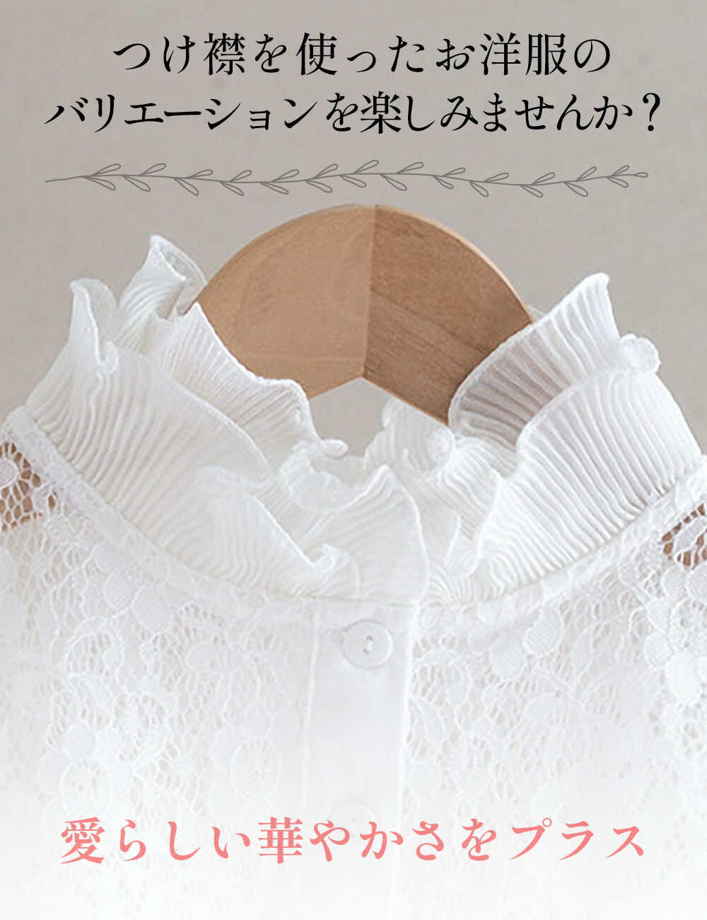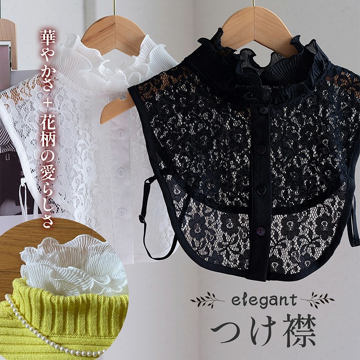 つけ襟 付け襟 つけ衿 つけえり レディース ブラウス シャツ レース 襟 花柄 ホワイト ブラック/フリルつけ襟