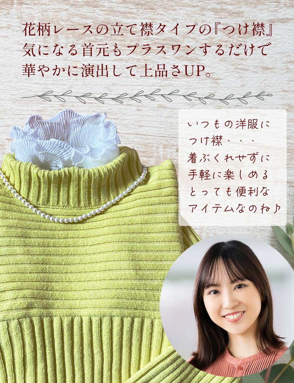付け襟は着ぶくれせずに手軽にレイヤードコーデを楽しめるとっても