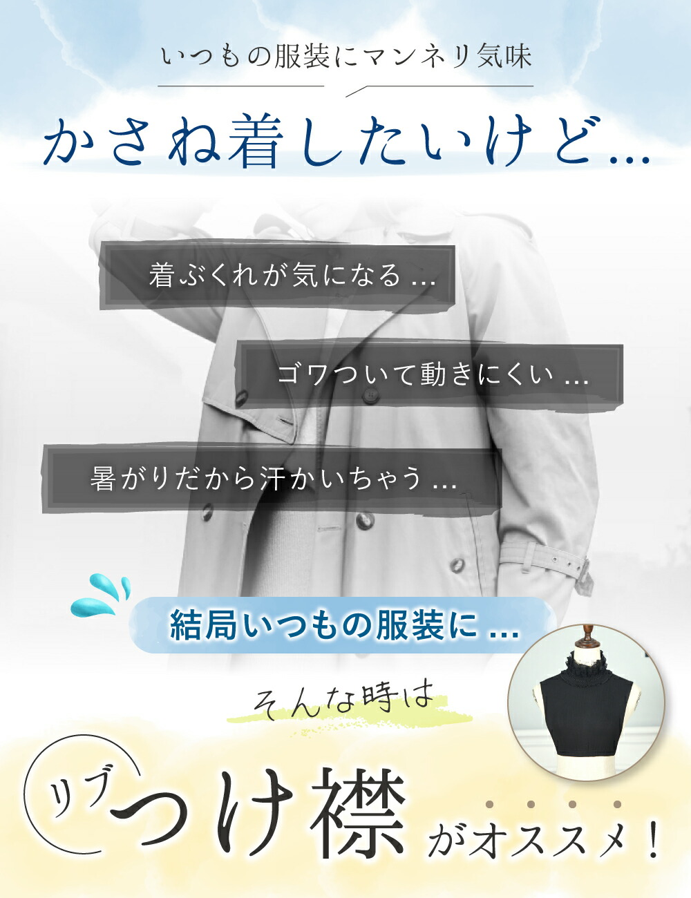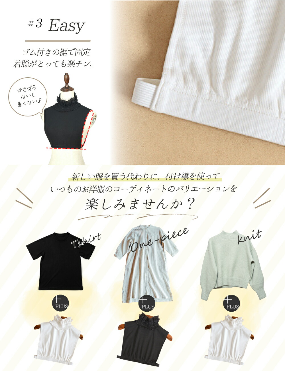 新しい服を買う代わりに、付け襟を使っていつものお洋服のコーディネートの