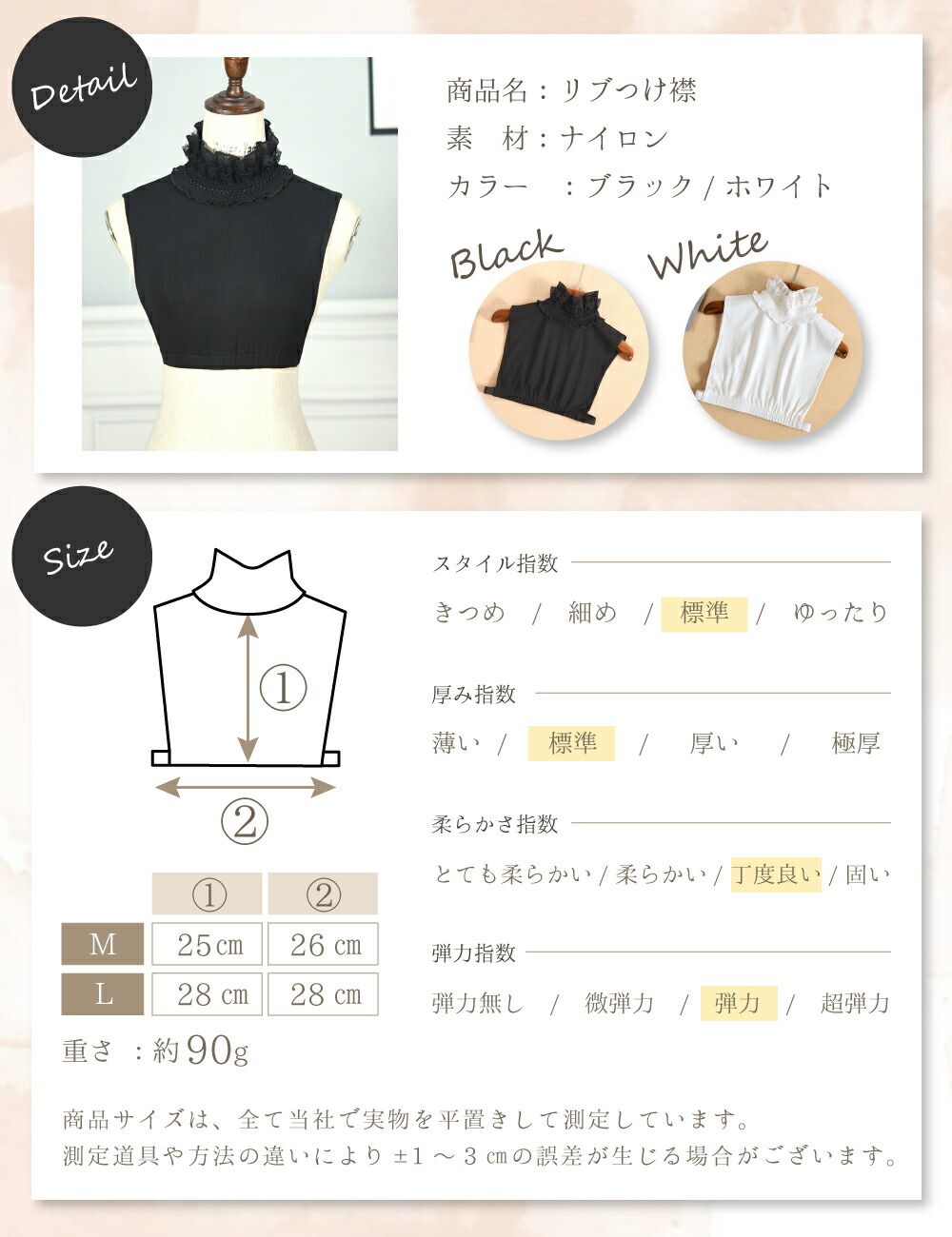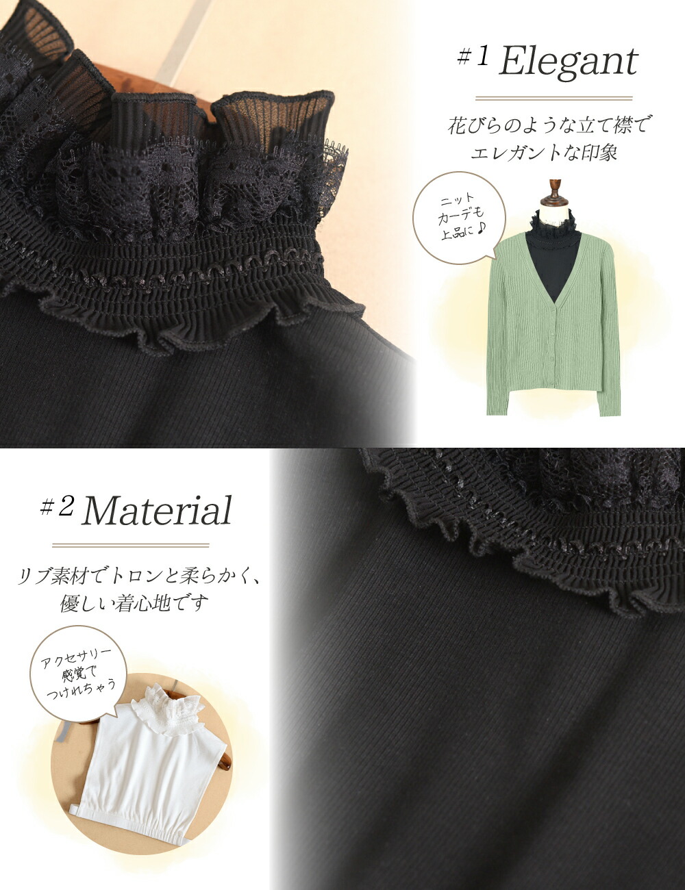 つけ襟 付け襟 フリル つけ衿 つけえり 立ち襟 リブ レディース ブラウス シャツ レース フェイク 襟 レイヤード ホワイト ブラック/リブつけ襟