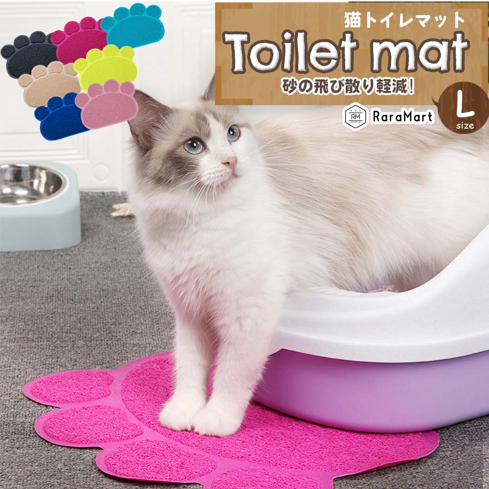 | 商品説明 | 猫ちゃんのトイレ、マットを置くと置かないとではだいぶ違います! リビングにトイレを置いているおうちは特に砂の飛び散りが気になるところ・・・。 トイレの砂が細かくても大きくても、どうしても猫ちゃんの足と一緒にトイレの外へ出てしまいますよね。 マットを置くと、もちろん100%はなくなりませんが、大半がマットの上で落ちてくれるので、トイレ周りの飛び散りも、リビングの「こんなとこに砂が!」というのも、猫ちゃんの肉きゅうに挟まる砂も、軽減してくれます。 そんなマット、せっかく置くなら可愛いのがいい♪ 中には、マットで遊んでしまう猫ちゃんもいると思いますが、そこは根気強く・・・ トイレから勢いよく飛び出す猫ちゃんがマットをずらしてしまう場合は、 マットの端を少しトイレの下に入れてトイレの重さで重石をするといいですね! |