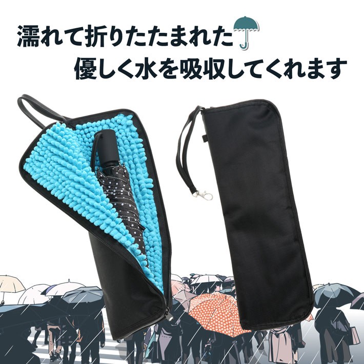 雨の日も安心!濡れたままサッとしまえるマイクロファイバーの折りたたみ傘カバー