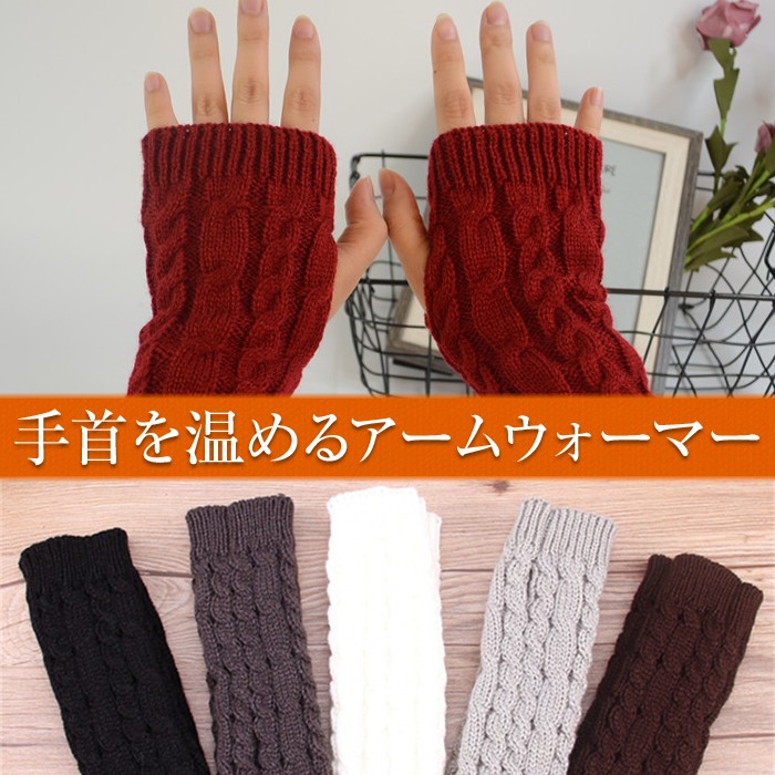 アームウォーマー レディース 指穴付き ハンドウォーマー ケーブル編み/アームウォーマー