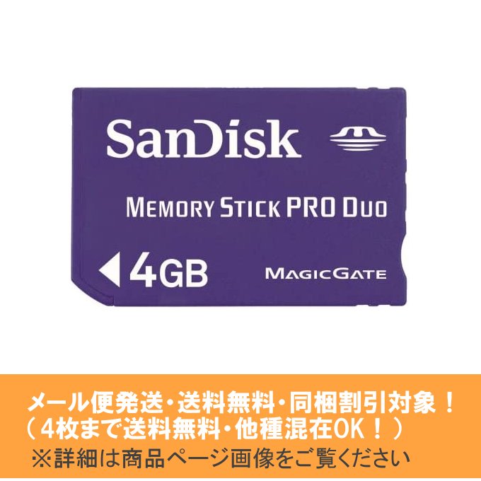 メール便発送(4枚まで送料無料・同梱割引対象) 新品 SanDisk サンディスク メモリースティック PRO DUO 4GB SDMSPD-4096-J61