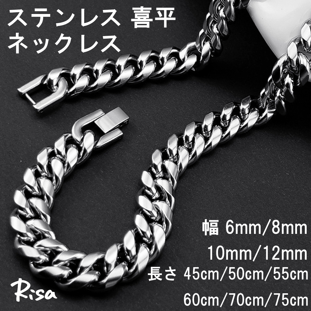 喜平 チェーン 中折れ式 ネックレス 太 2面 金属アレルギー対応 幅 6 8 10 12 mm メンズ レディース ステンレス