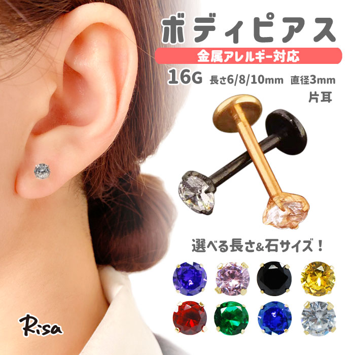 ボディピアス 16G 金属アレルギー 対応 サージカルステンレス スタッド 軟骨 立爪 ジュエル かわいい