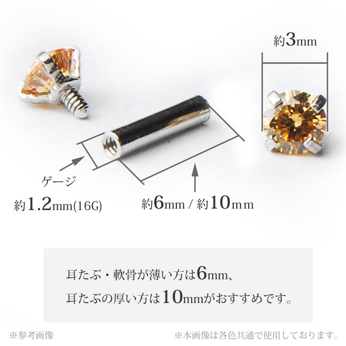 ■ポストサイズ:太さ…約1.2mm(16G)、長さ…約6mm/約10mm※画像をご確認ください。
