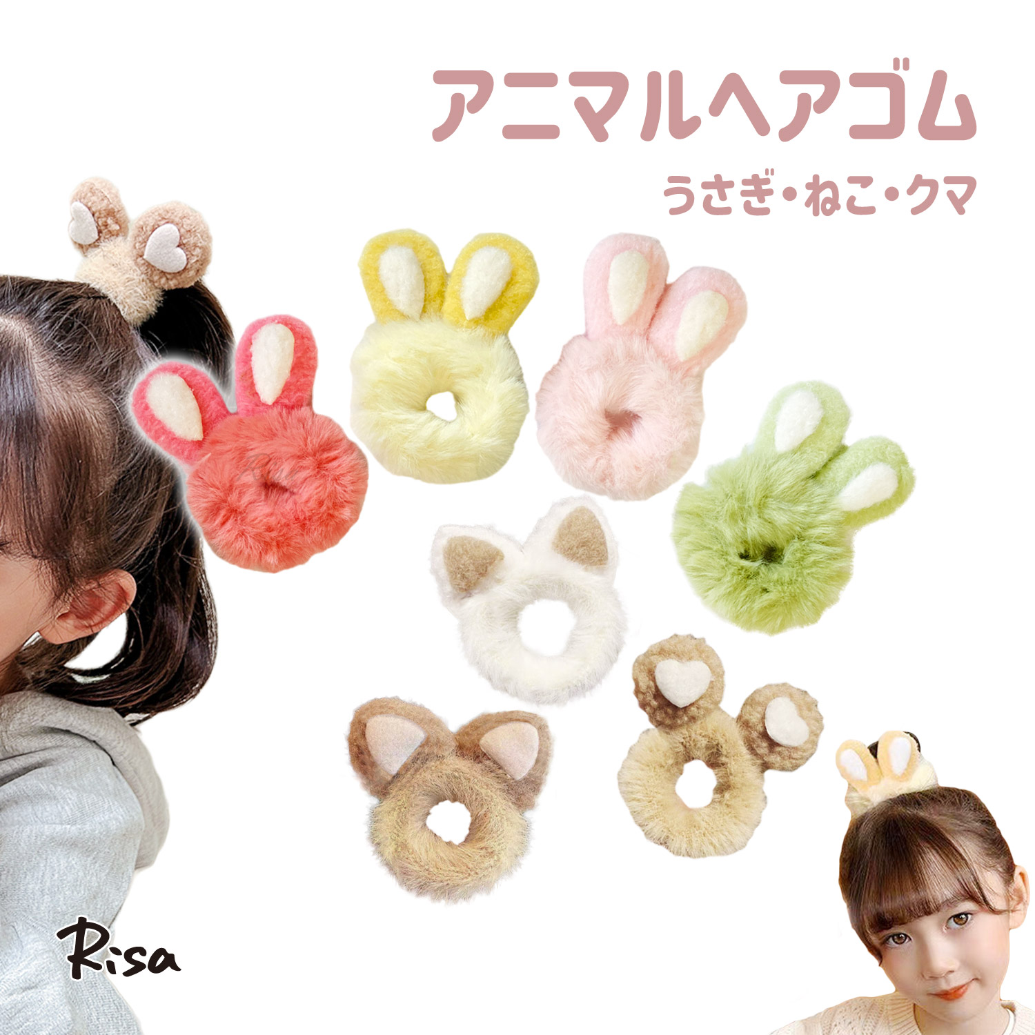 ヘアゴム シュシュ 髪留め アクセサリー ふわふわ キッズ ベビー アニマル コスプレ うさぎ ネコ ベアー 贈り物 ヘアアクセ お祭り ダンス
