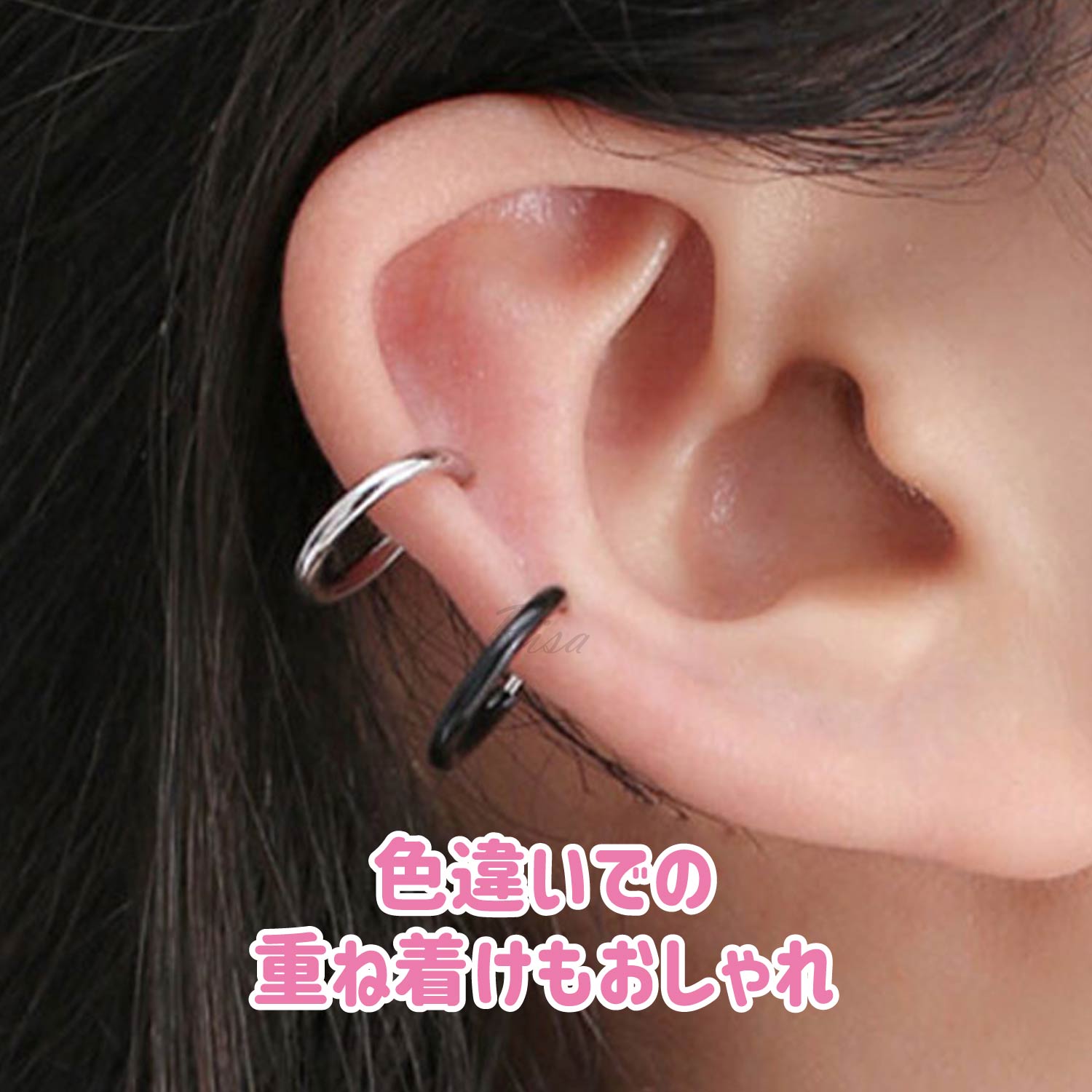 イヤーカフ フェイクピアス 両耳セット 金属アレルギー 対応 ノンホール メンズ レディース リング フープ 挟む イヤカフ 穴なし