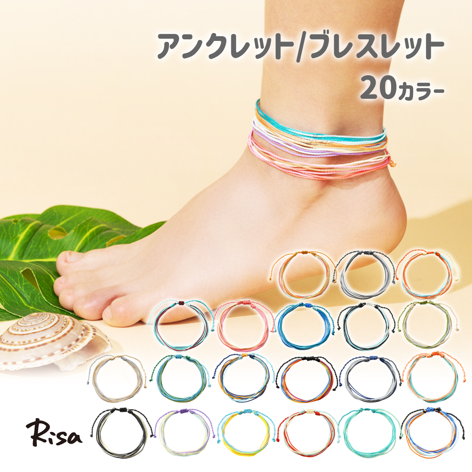 アンクレット ブレスレット ワックス コード カラー コード 紐 レディース メンズ ペア ミサンガ 足首 つけっぱなし 2way