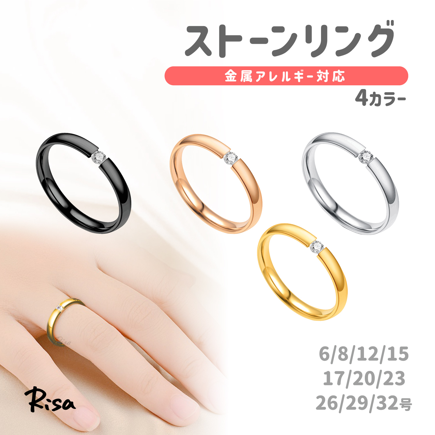 リング 指輪 金属アレルギー対応 サージカルステンレス 一粒 ジュエル シンプル プレーン ストーン レディース アクセサリー 人気 おしゃれ
