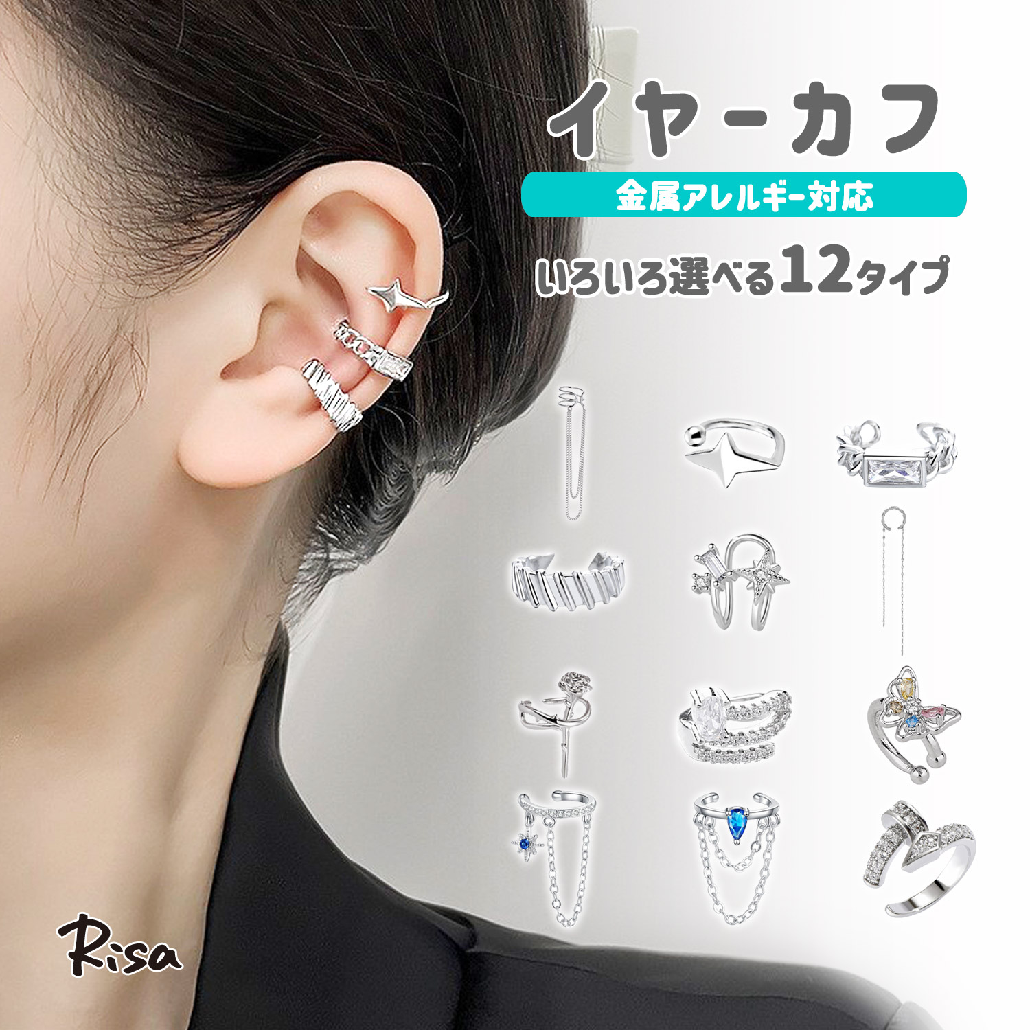 イヤーカフ 金属アレルギー対応 片耳 イヤカフ イヤーカフス 12種 ニッケルフリー レディース メンズ イヤリング フェイクピアス 軟骨 小さい
