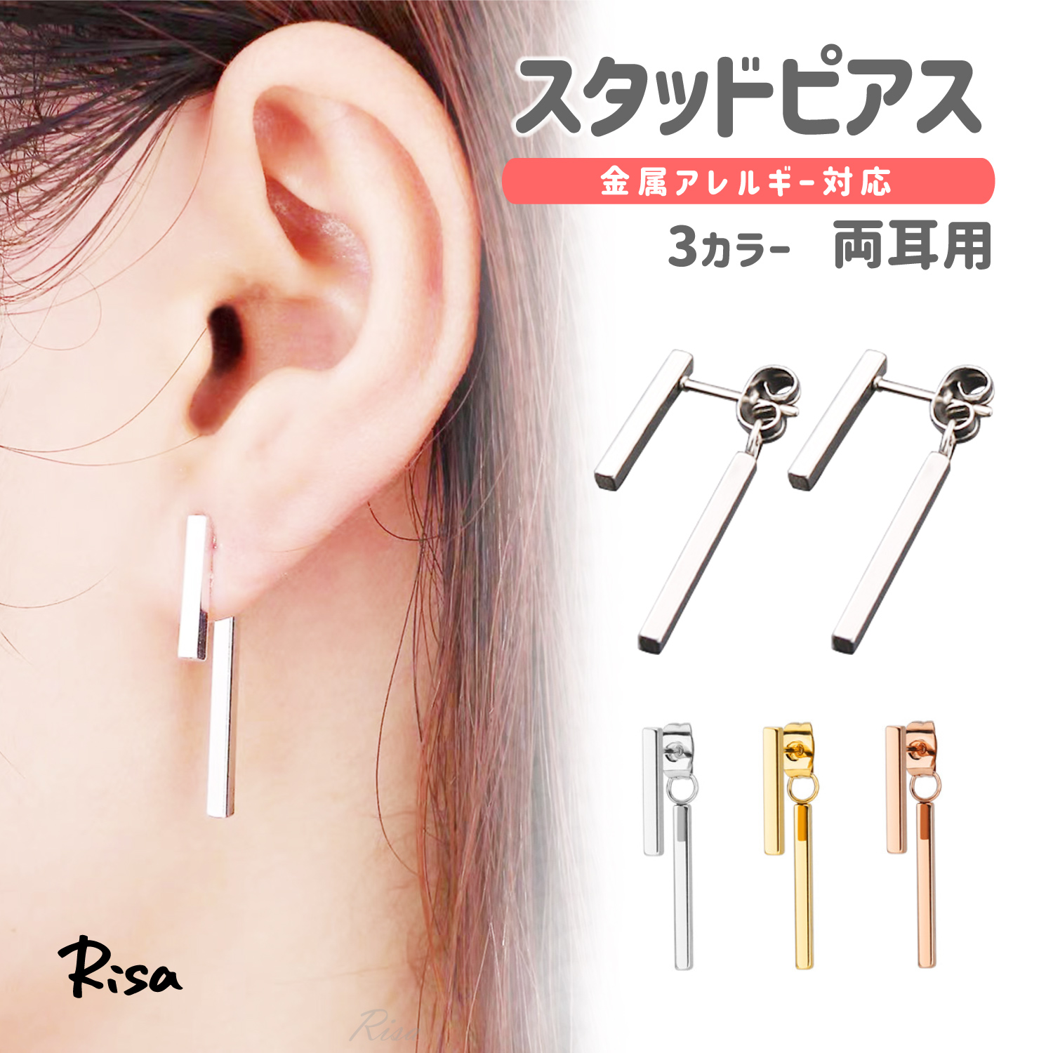 ピアス 金属アレルギー対応 サージカルステンレス 両耳 スティック スクエア ツインバー メンズ レディース ライン ショート スタッドピアス