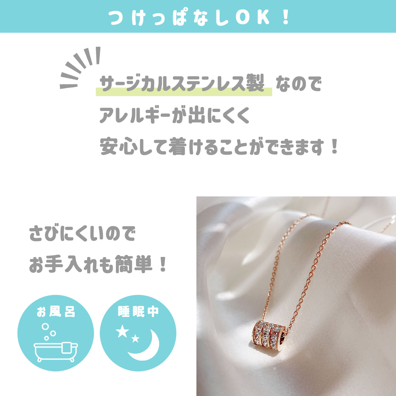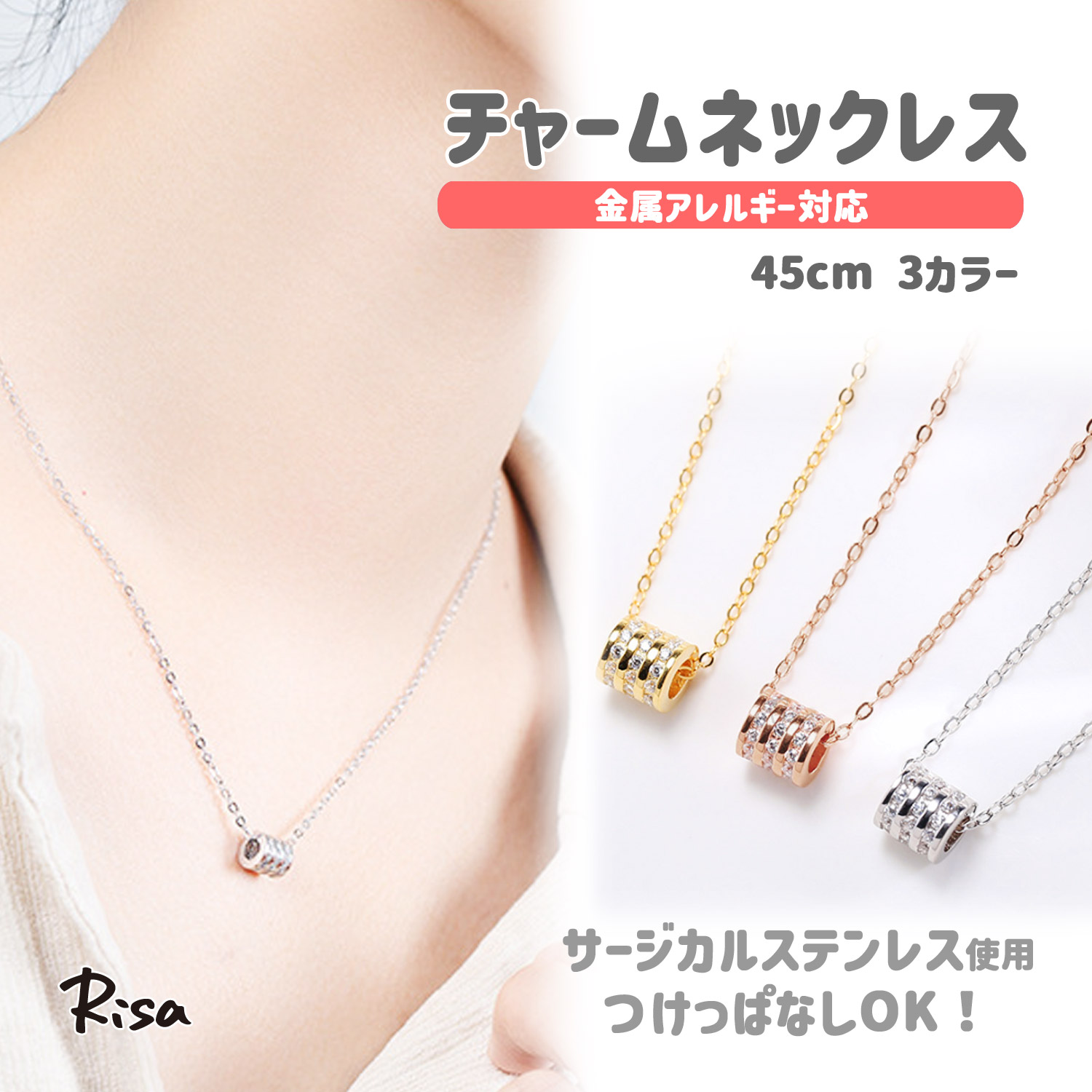 ネックレス チェーン 金属アレルギー 対応 サージカルステンレス フルエタニティ 45cm ペンダント チャームネックレス サークル レディース