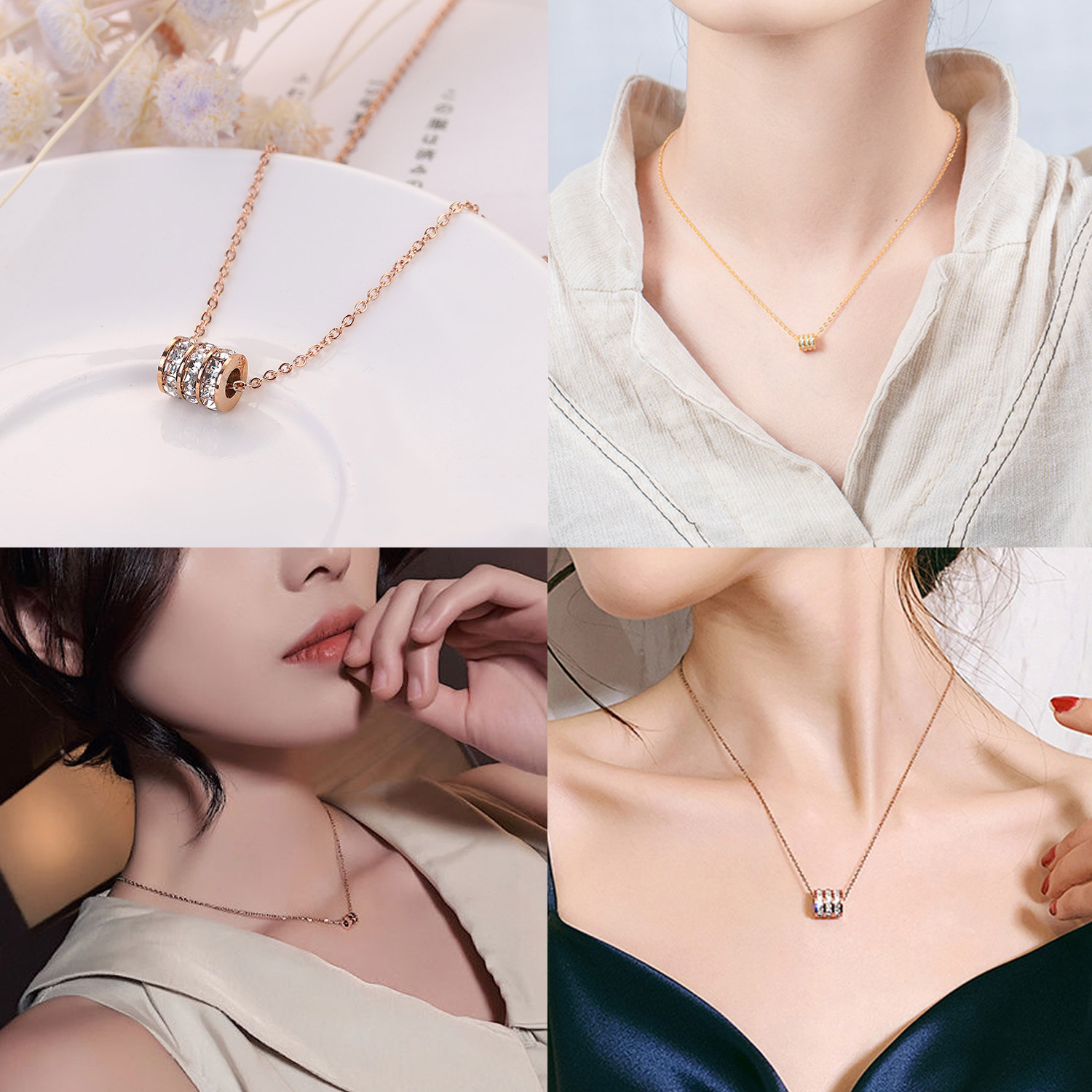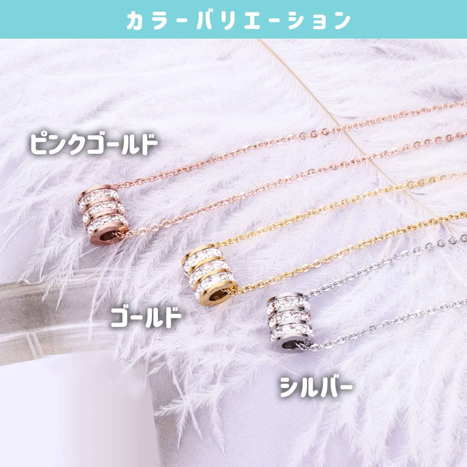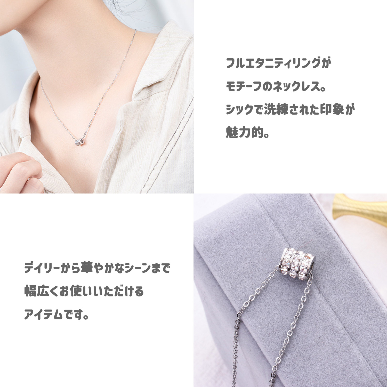 ●フルエタニティリングのチャームがきらめくネックレス。