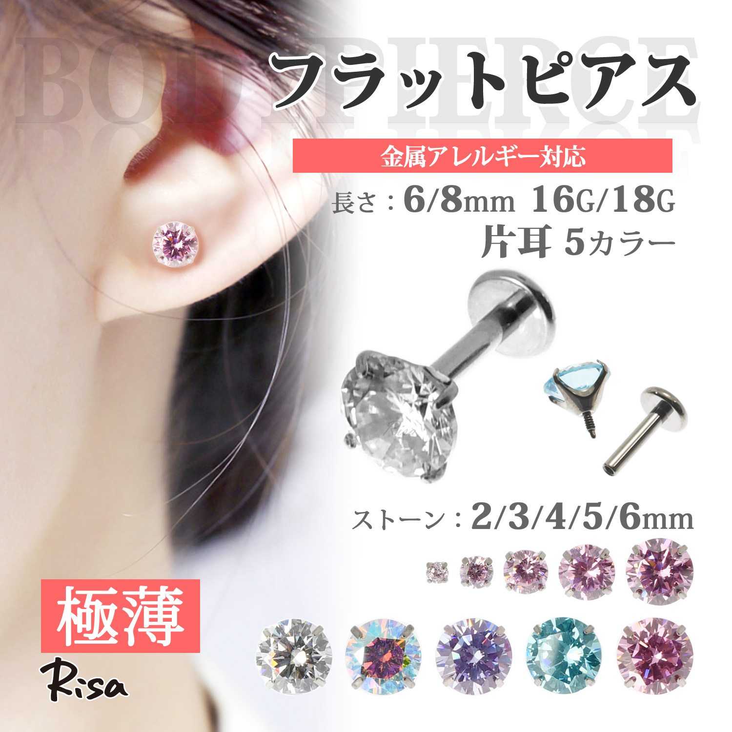 ボディピアス 金属アレルギー対応 片耳 一粒ジュエル 立爪 16G 18G 6 - 8mm ストーン 2 - 6mm レディース つけっぱなし