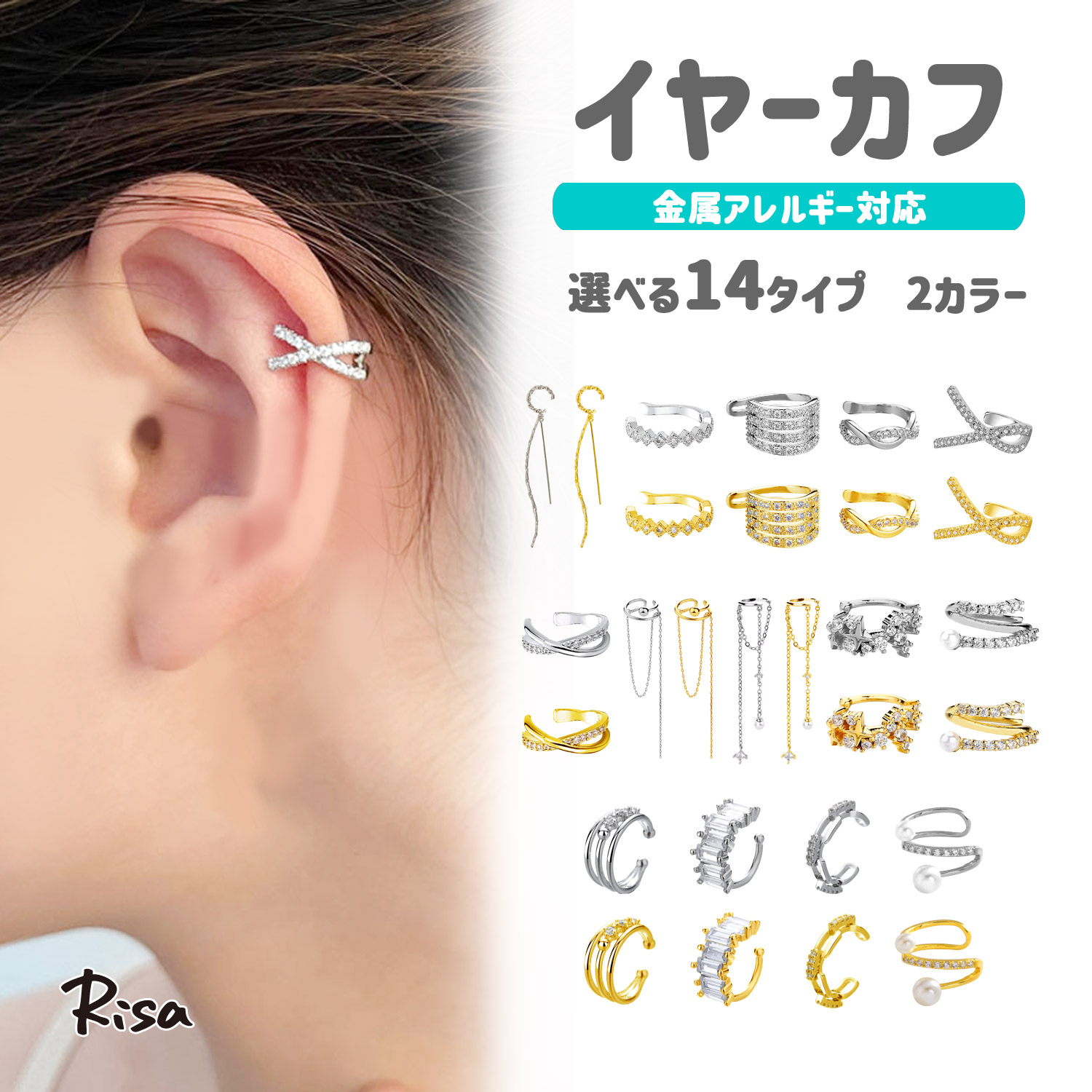 イヤーカフ イヤカフ 金属アレルギー 対応 14種 片耳 ニッケルフリー レディース メンズ イヤリング フェイクピアス 軟骨 チェーン