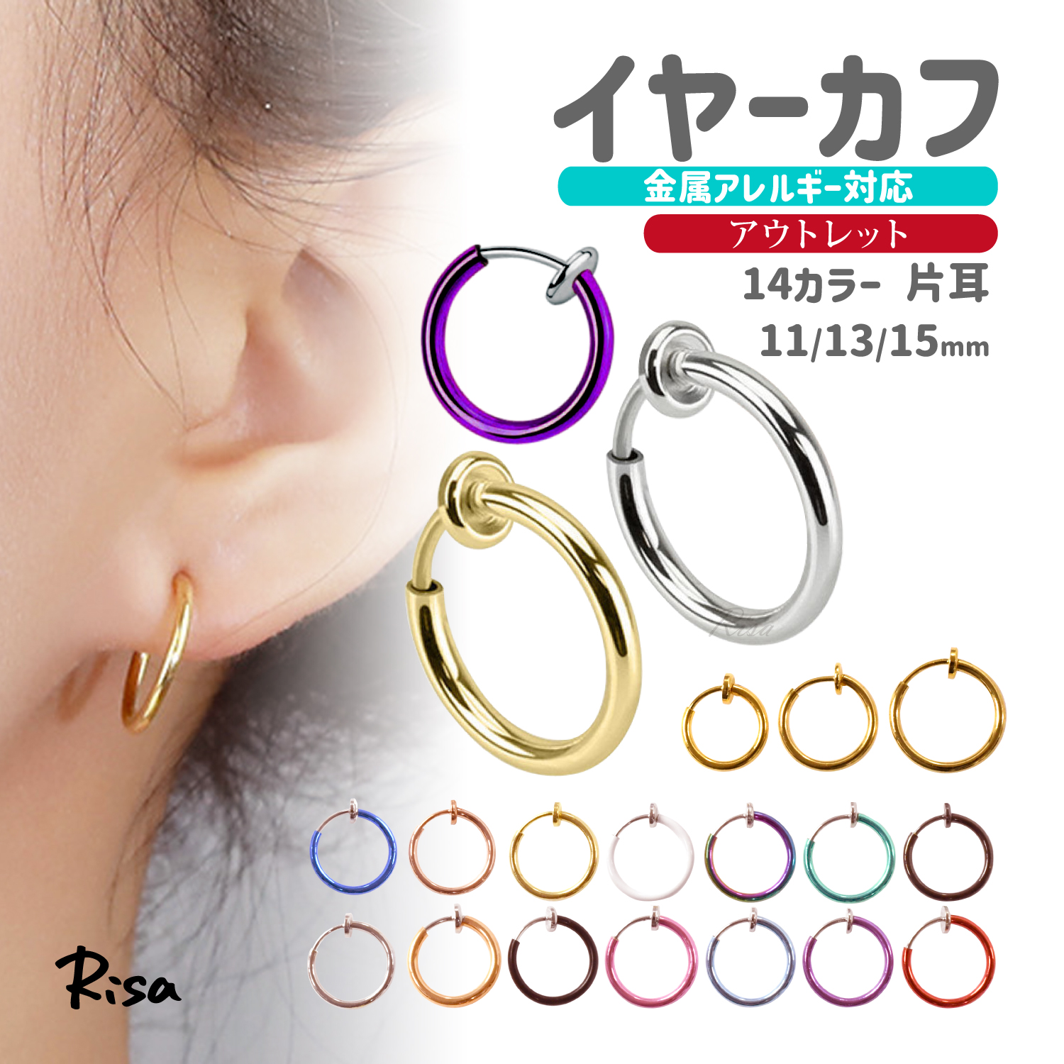 イヤーカフ フェイクピアス 金属アレルギー 対応 ノンホール メンズ レディース リング フープ 挟む 片耳 イヤカフ 穴なし アウトレット