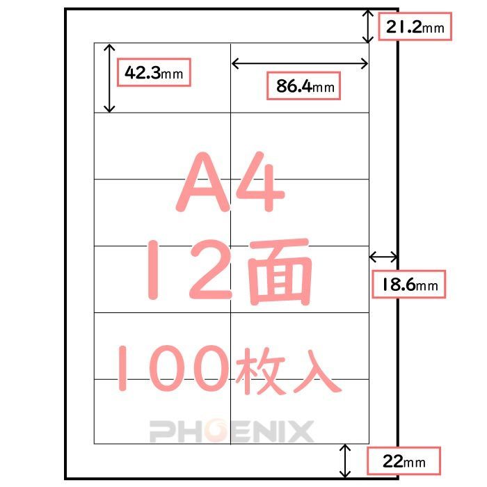 ■サイズ:用紙…A4(210mm x 297mm) ラベル…42.3mm x 86.4mm