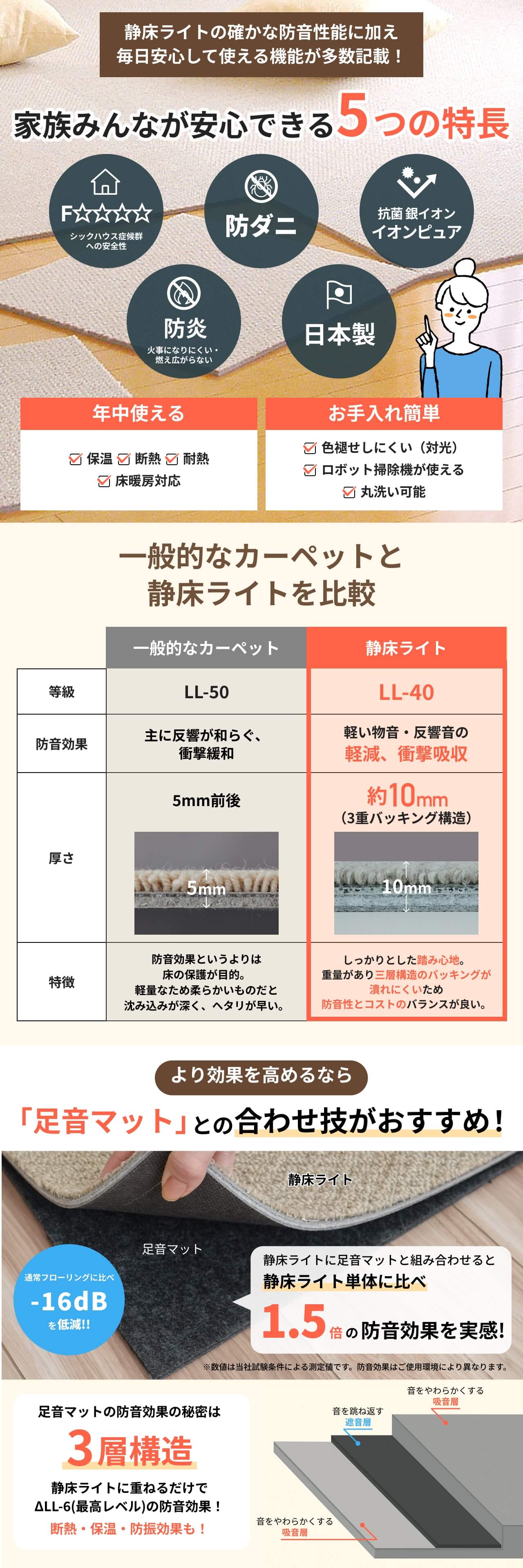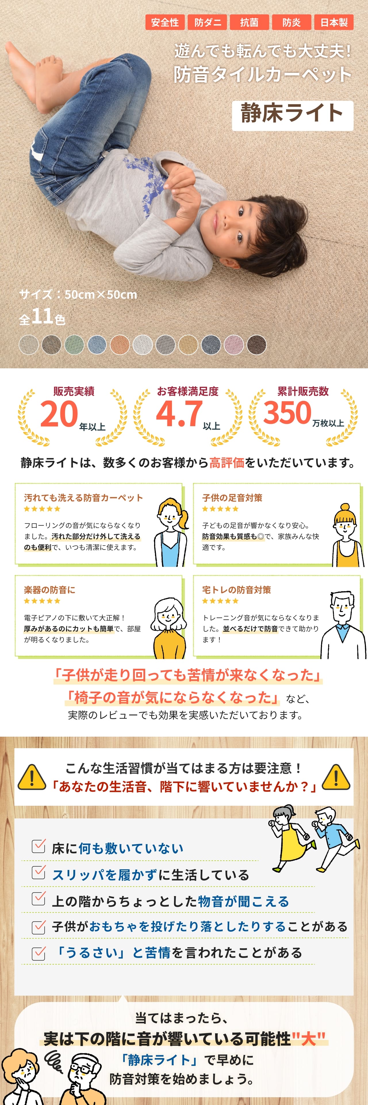 防音マット 防音カーペット 静床ライト 50×50cm 10枚 日本製 防炎 厚手 タイルカーペット 防音シート 足音 防振マット 騒音対策 床 赤ちゃん 子供 ペット 最強