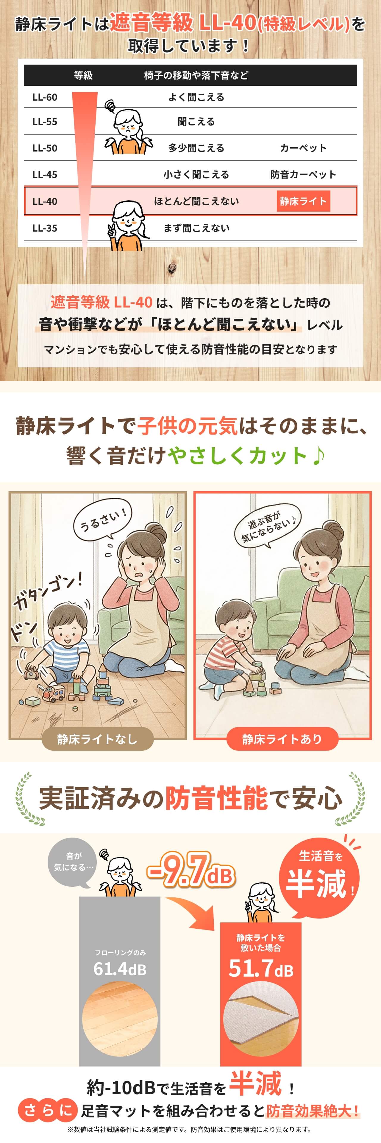 軽量床衝撃音性能:LL-40(スラブ厚150mm)