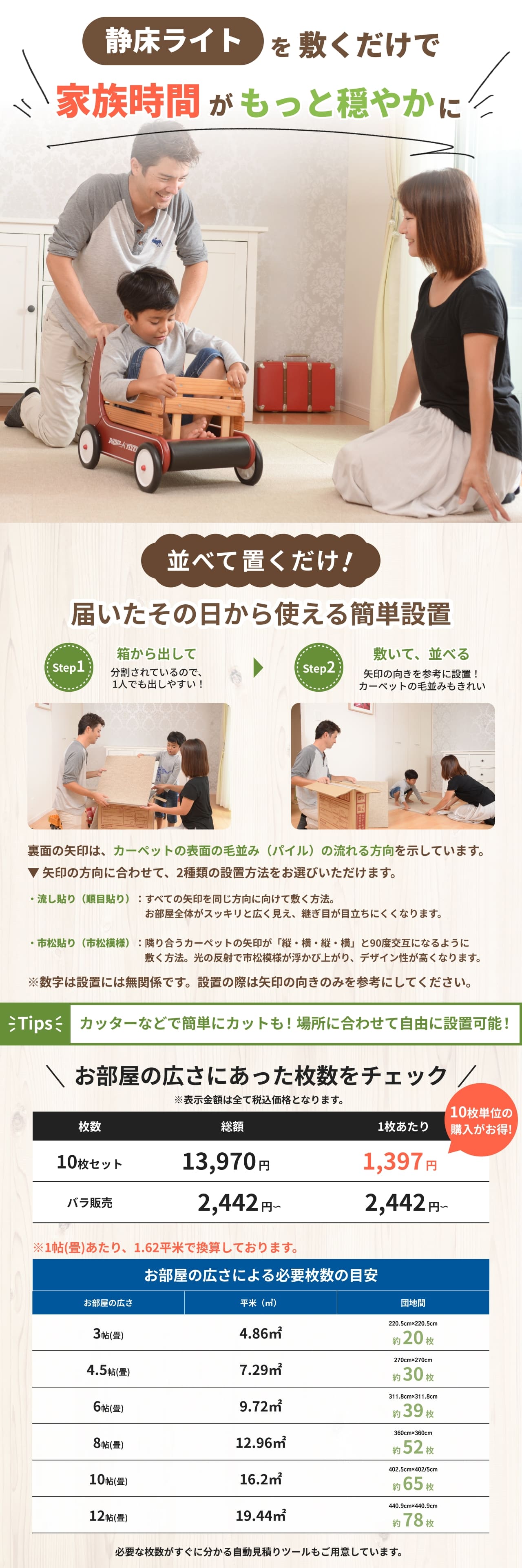 並べるだけの簡単防音カーペット「静床ライト」10枚