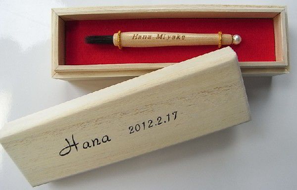 桐の保存箱にも下のお名前と生年月日が入ります。筆の軸にはお子様のお名前を彫刻いたします。