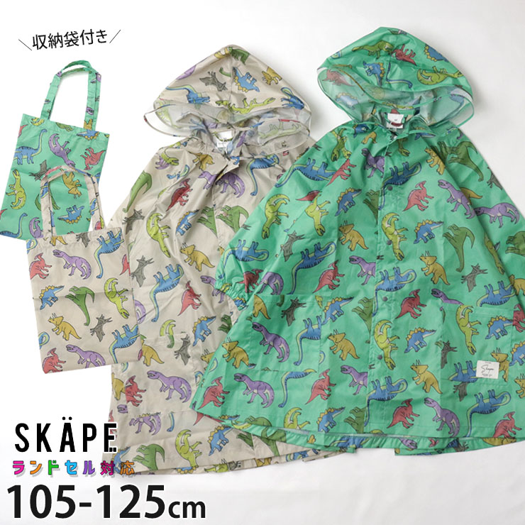 レインコート ランドセル対応 リュック対応 収納袋付き 恐竜 SKAPE エスケープ 10321200-1 110cm 120cm レインウェア 子供 男の子