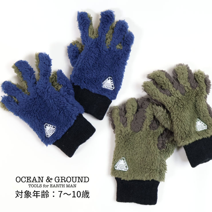 OCEAN&GROUND 5本指手袋 ボア手袋 配色切替 男の子 女の子 キッズ 冬 防寒 子供服 子供用 小学生 通学 オーシャンアンドグラウンド 1223502【メール便対象】