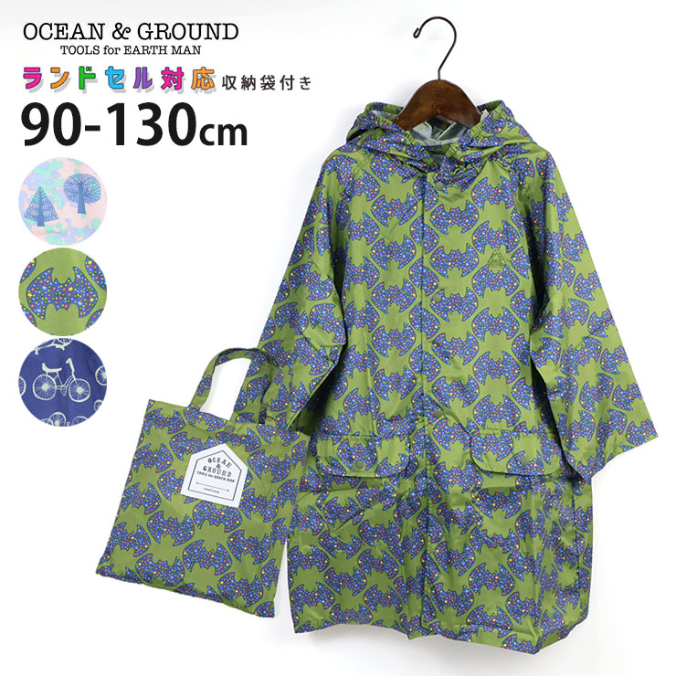 レインコート ランドセル対応 収納バッグ付き 総柄 OCEAN&GROUND オーシャンアンドグラウンド 90 100 110 120 130 1614602 子供 男の子 女の子