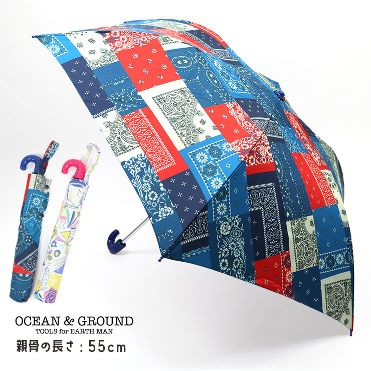 折りたたみ傘 55cm 6本骨 総柄 バンダナ柄 雨傘 子供傘 OCEAN&GROUND オーシャンアンドグラウンド 1914802 子供 男の子 女の子