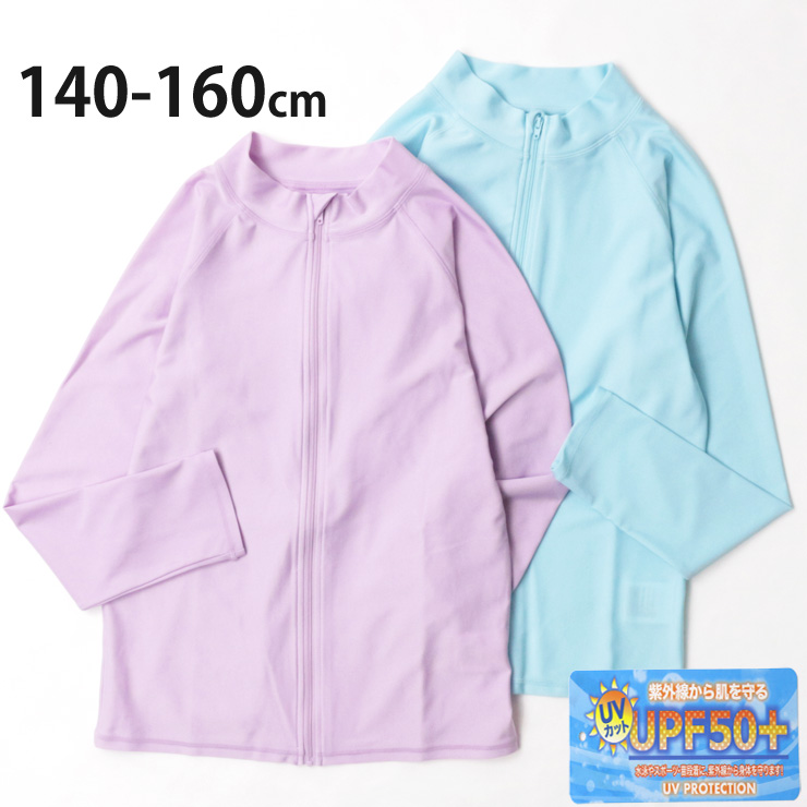 ラッシュガード 長袖 前あき ジップアップ フードなし UVカット パステルカラー 無地 女の子 男の子 キッズ ジュニア UPF50+ スイム 水着 フルジップ ファスナー 子供 PINKSAIL ピンクセイル 140 150 160 ラベンダー 222868