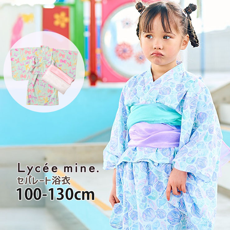 Lycee mine 浴衣 セパレート 帯2本付き 簡単 セット リボン柄 シェル柄 総柄 簡単着付け ゆかた リセマイン 3052612 子供 女の子