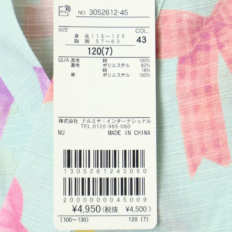 Lycee mine 浴衣 セパレート 帯2本付き 簡単 セット リボン柄 シェル柄 女の子 キッズ 総柄 簡単着付け ゆかた 子供服 女児 リセマイン 3052612