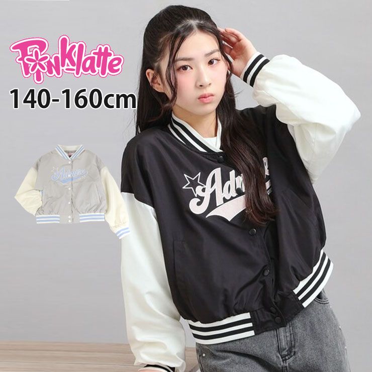 PINK-latte スタジャン チアロゴ アップリケ 薄手 ジャンパー ジャケット ブルゾン ピンクラテ 319-45112 子供 女の子