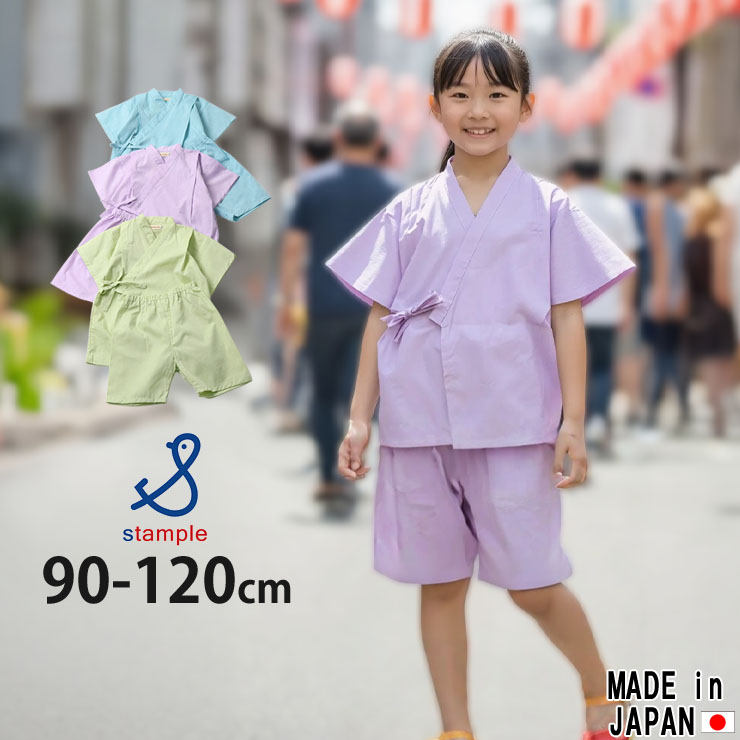 甚平 フルーツカラー 無地 男の子 女の子 キッズ ベビー 日本製 綿100% お祭り 花火大会 子供 子供服 小学生 幼児 2歳 3歳 ベビー服 ベビー甚平 STAMPLE スタンプル 90 100 110 120 緑 紫 水色 32989【メール便対象】
