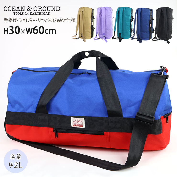 OCEAN&GROUND 3WAYボストンバッグ Mサイズ 42L リュック 斜めがけ 無地 配色切替 男の子 女の子 容量42リットル 子供 子供用 小学生 修学旅行 林間学校 キャンプ オーシャンアンドグラウンド 4415012