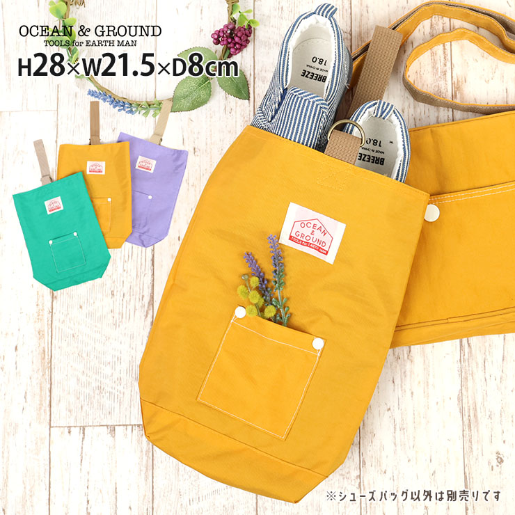OCEAN&GROUND シューズバッグ 上履き入れ 無地 カラー ナイロン 男の子 女の子 キッズ 上履き袋 上靴入れ 上履袋 上靴袋 体育館シューズ袋 子供用 保育園 幼稚園 小学生 通園 通学 オーシャンアンドグラウンド 緑 黄色 紫 4525003【メール便対象】