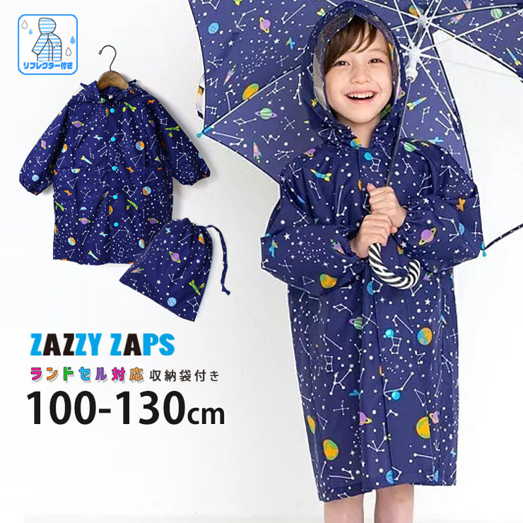 レインコート 宇宙柄 ランドセル対応 巾着付き まち付 レインウェア Zazzy Zaps ザジーザップス 100 110 6731855 子供 男の子
