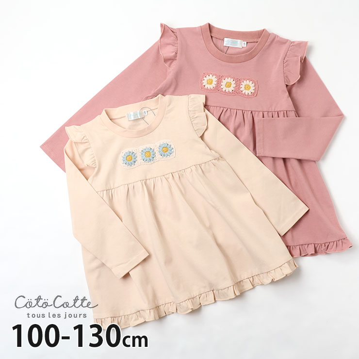 長袖チュニック Tシャツ クロシェ編みモチーフ フリル 綿100% coto cotte tous les jours コトコトトゥレジュール 100 110 120 722-279401 子供 女の子