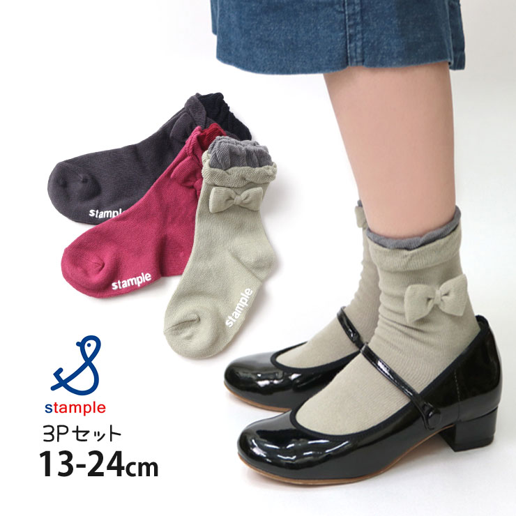 子供 STAMPLE スタンプル 3Pソックス リボン フリル 【 72441 】【 S(13-15cm) M(16-18cm) L(19-21cm) 】【3足組 3Pセット 靴下 子供 キッズ ベビー 女の子】【メール便対象】