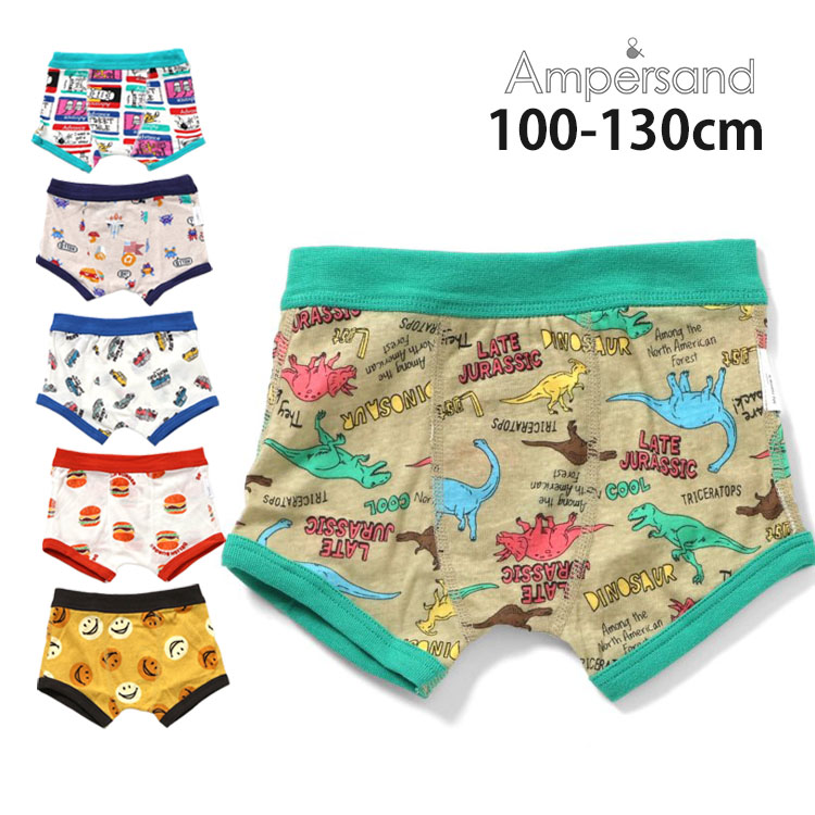 ボクサーパンツ 下着 ドット絵 アイコン 車 恐竜 スマイル ハンバーガー 綿100% ampersand アンパサンド 110 120 130 aps-bp10 子供 男の子