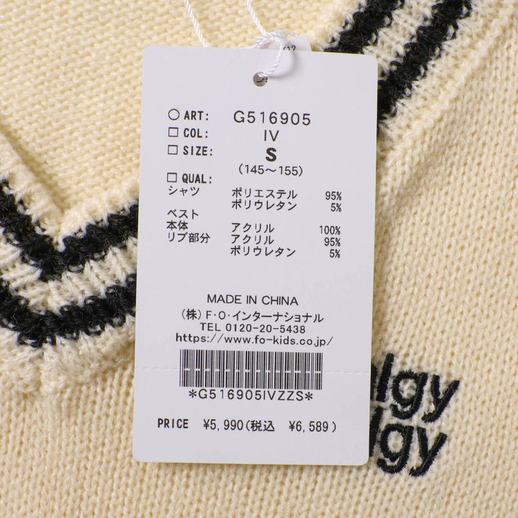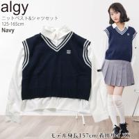 ALGY 2点セット 長袖シャツ ニットベスト Vネック クロップド丈 ロゴ アルジー G516905 子供 女の子
