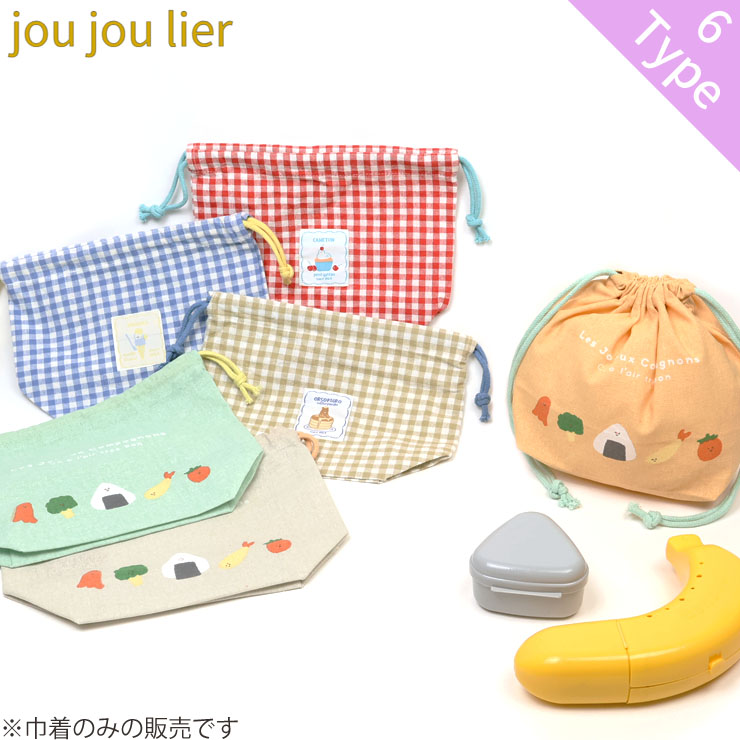 ランチ巾着 お弁当柄 ギンガムチェック柄 横入れ 男の子 女の子 キッズ 子供 お弁当袋 巾着袋 ランチバッグ 子供用 保育園 幼稚園 小学校 通園 通学 jou jou lier ジュジュリエ GRK1638-1645【メール便対象】