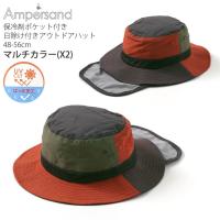 アウトドアハット 帽子 日よけ 保冷剤ポケット あご紐 たれ付き 撥水加工 UVカット メッシュ切替 ampersand アンパサンド L268015 子供 男の子 女の子