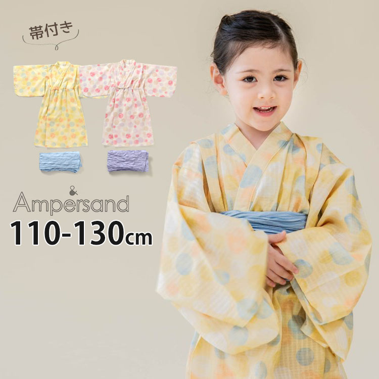 浴衣 ワンピース 帯付き 簡単着付け カラフルドット 2点セット 兵児帯 浴衣ドレス ゆかた 女児 ampersand アンパサンド 110 130 L375042 子供 女の子