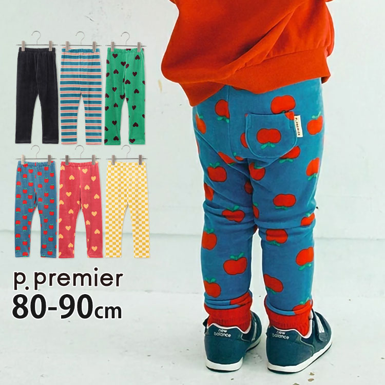 p.premier ぬくぬくレギンス ベロアタッチのメルティ起毛 男の子 女の子 キッズ ベビー 冬 うしろポケット付き ウエストゴム ロングパンツ 長ズボン ズボン ボトムス 子供服 おしゃれ ピードットプルミエ 80 90 ネイビー 赤 緑 青 P520035【メール便対象】