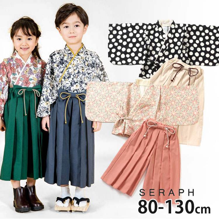 seraph お気軽簡単袴セット セパレート 花柄 フラワー 水玉 総柄 着物 和装 フォーマル セラフ 100cm 110cm 120cm 130cm 140cm S475013 子供 男の子 女の子